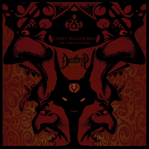 Masterminded by Black Metal riff wiz Host (UK) and brought to life (?) by the extraordinary vocal talents of Aldrahn (ex-DHG, Thorns, Zyklon-B, ex-Old Man's Child), The Deathtrip bathes in the lo-fi, ultra-primitive and ghastly sound that was custom on the peak of the bleak years of second wave Black Metal. A Foot In Each Hell presents the demo recordings (+ exclusive tracks) of The Deathtrip on vinyl for the first time. Atop a backdrop of crude programmed drums, layers of spiralling guitars set the temperature to "freeze", and then Aldrahn enters, whose gut wrenching, multifaceted vocals set the damn thing on fire. This is Black Metal in its purest form. Cover art by Aldrahn & Host." (Demonhood Productions)